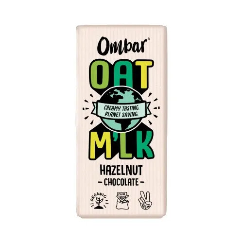 Ombar Oat M'lk Hazelnut (70g) is a game-changer for plant-based chocolate lovers. This bar delivers all the creamy satisfaction of traditional milk chocolate using sustainable British-grown naked oats instead of dairy. By blending smooth Italian hazelnut paste into the oaty chocolate base and adding generous pieces of roasted hazelnuts, Ombar has created a nutty masterpiece with a sophisticated crunch. True to Ombar’s heritage, the cacao is unroasted to maintain its nutrient-dense profile and deep floral notes. This bar is not only 100% organic and vegan, but it also boasts 40% less sugar than "regular" milk chocolate. It’s a planet-positive choice with fully recyclable packaging and contributions from every sale going toward rainforest reforestation in Ecuador.