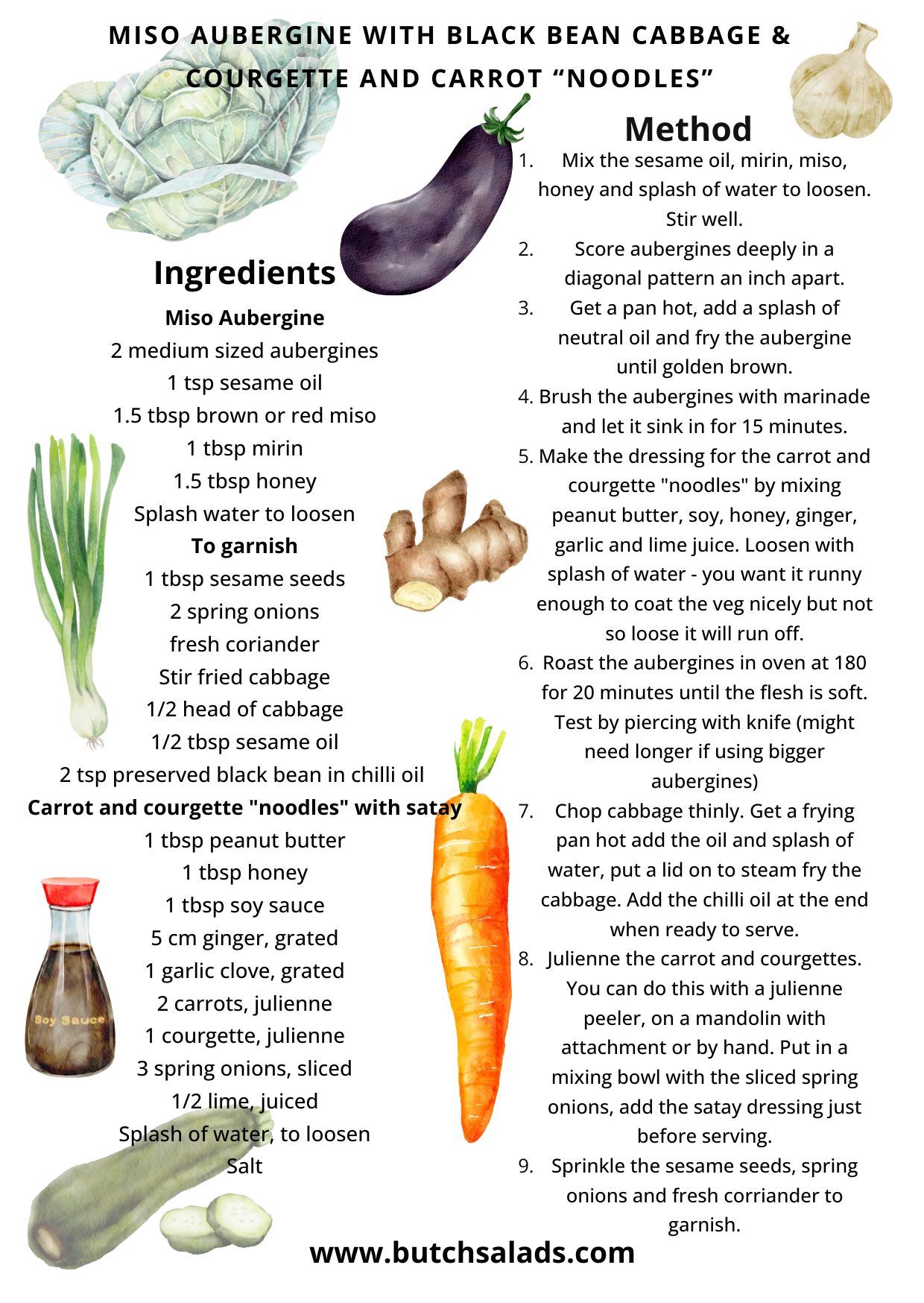 Image of Miso Aubergine, black bean cabbage and veggie noodles